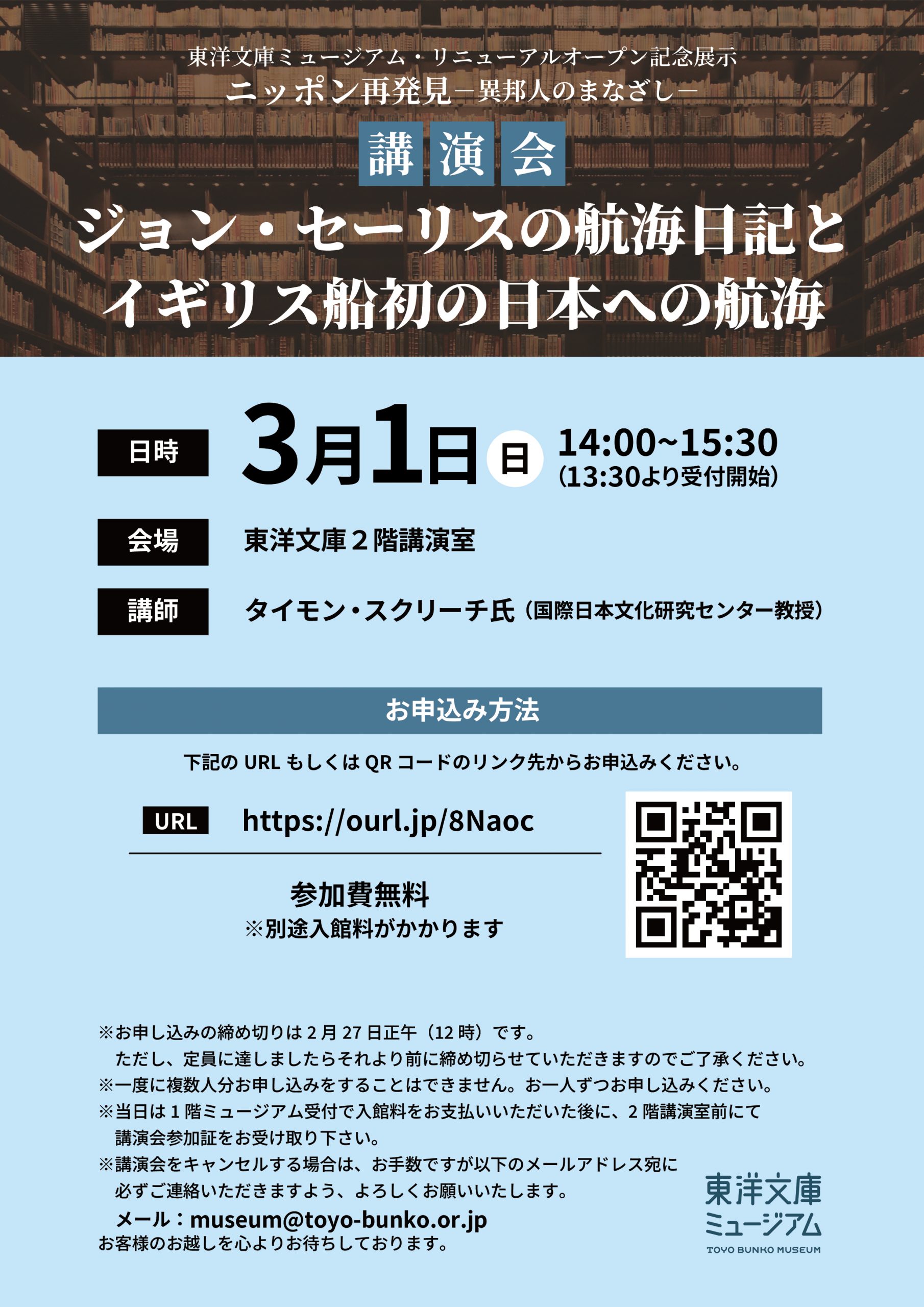 東洋学講座 2024年度前期東洋学講座 テーマ「朝鮮近世の史料世界―文献、文書、地図―」 「19世紀末済州島民の異国への漂流―『済州啓録』の記録を中心に―」 2024/06/26 18時~20時 >拡大図を見る 2024年度前期東洋学講座を開催いたします。 聴講無料ですが、事前申込が必要です。 今回は、対面開催とオンライン開催を併用しています。 皆様のご参加を心よりお待ちしております。 日時 2024/06/26 18時~20時 タイトル 『2024年度前期東洋学講座 テーマ「朝鮮近世の史料世界―文献、文書、地図―」 「19世紀末済州島民の異国への漂流―『済州啓録』の記録を中心に―」』 講師 六反田 豊氏(東洋文庫研究員、東京大学教授) 参加費 無料 お申し込みはこちら