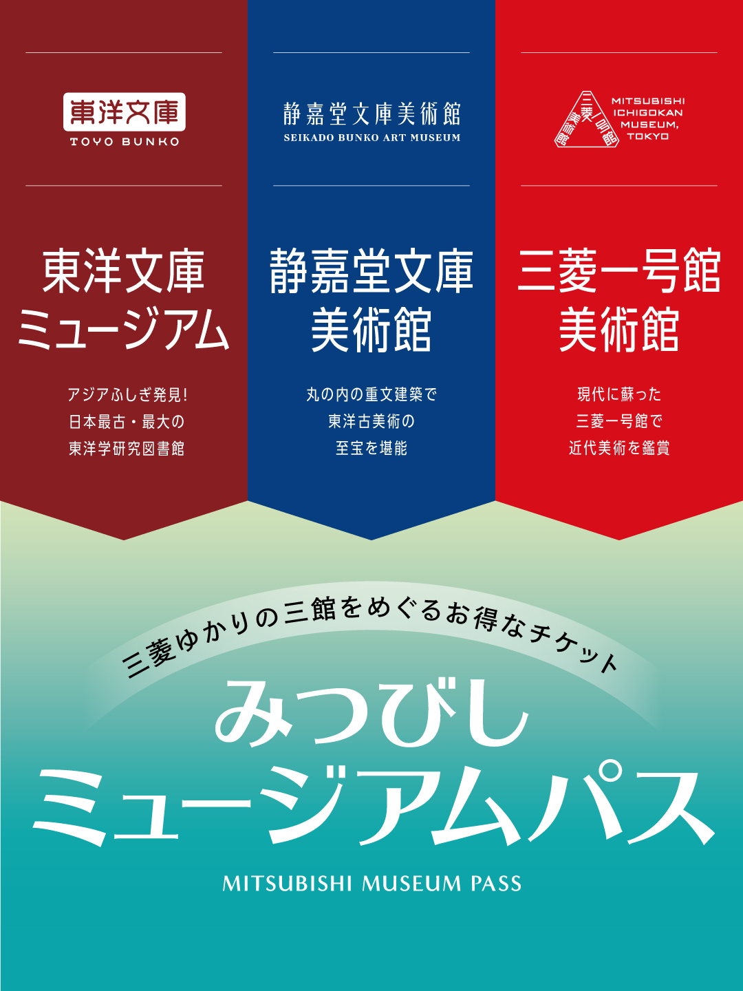 三菱ゆかりの3館(東洋文庫ミュージアム、静嘉堂文庫美術館、三菱一号館美術館)のチケットがセットになったお得なミュージアムパスを4月25日10時より販売いたします。