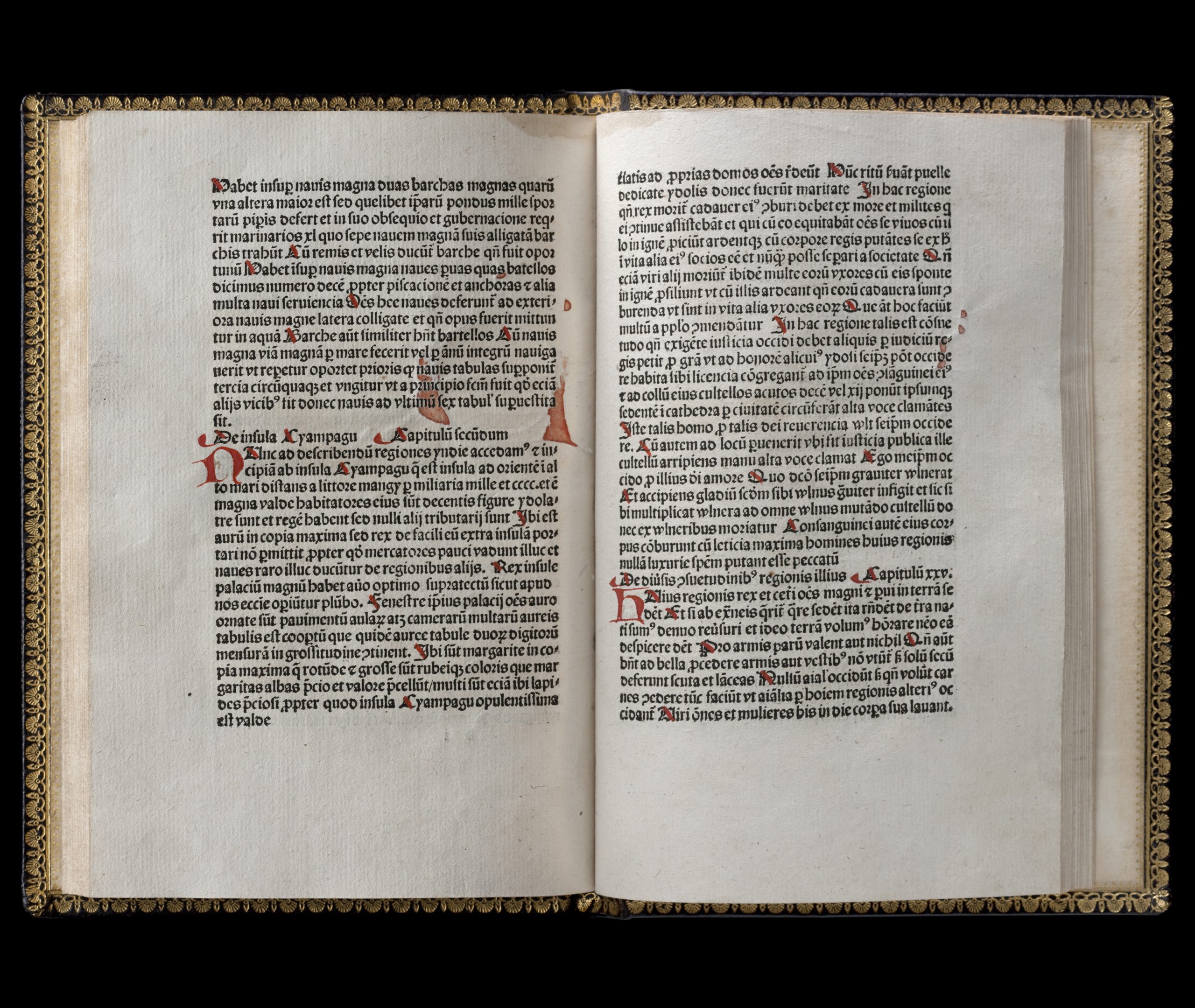 ヴェネツィアの商人マルコ・ポーロが、父や叔父と東方を旅した際に見聞きしたこと、体験したことがまとめられた旅行記です。東洋文庫には年代がわかるものだけでも、出版年・出版地・言語が異なる『東方見聞録』が約80種類あり、刊本のコレクションとしては世界最大です。本書のなかで、日本は黄金や宝石を豊富に産出する島「ジパング」として紹介されています。その内容は多くの人々の憧れを刺激し、大航海時代の幕開けに大きな影響を与えました。